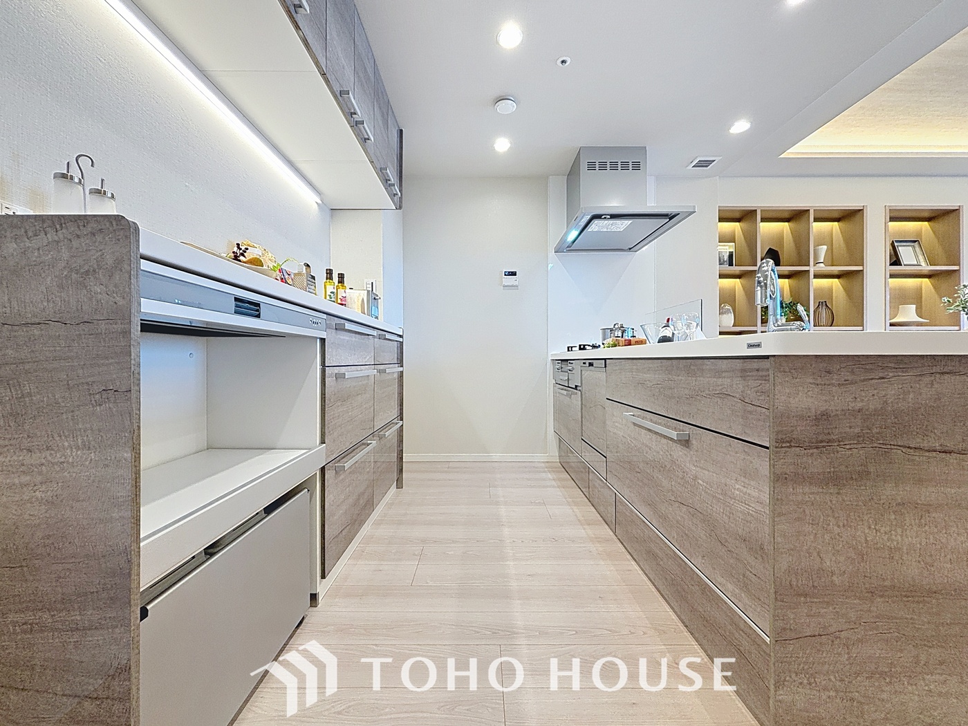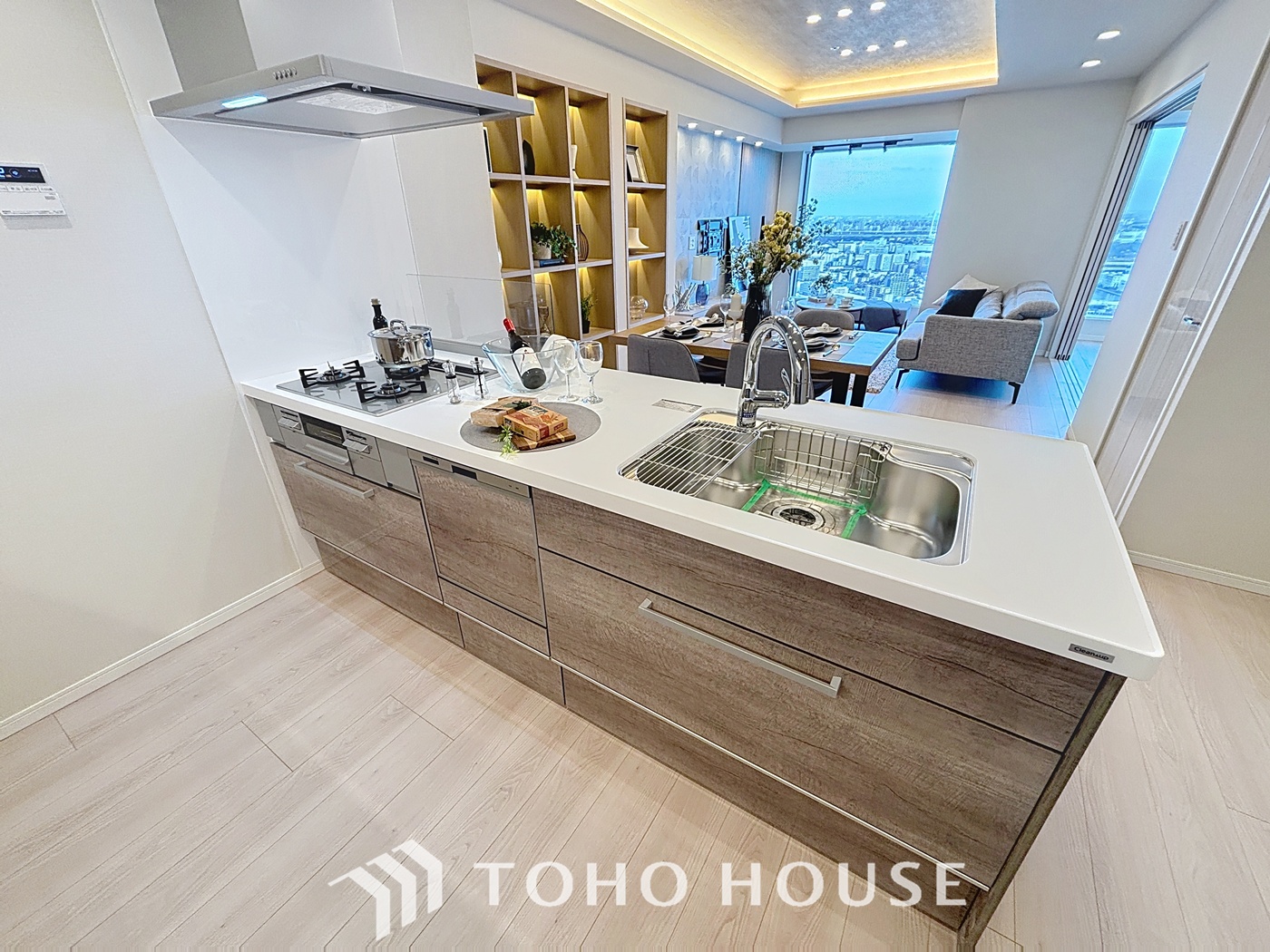 リビングを見渡せる対面式のキッチンには、食洗機とディスポーザーを標準装備。後片付けの手間を大きく省き、家族と過ごす穏やかな時間をより豊かに広げてくれます。