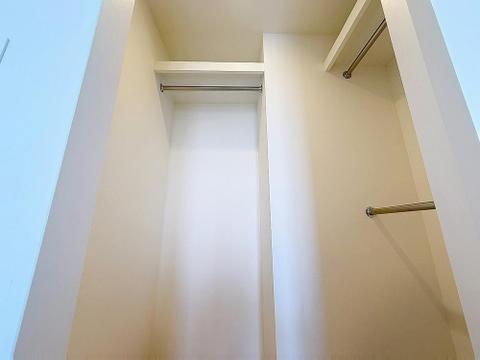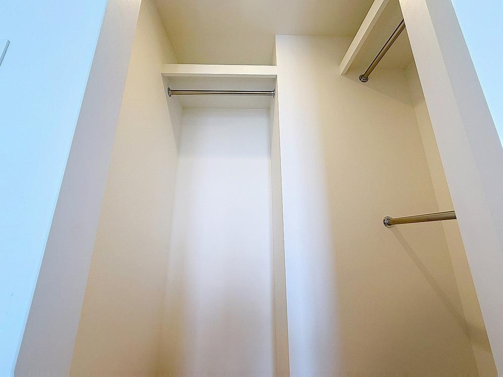 「たっぷり収納。ウォークインクローゼット」たっぷりと荷物が入るよう、ウォークインクローゼットを完備いたしました。画像と現地では大きさ、広さの感覚が違います。是非ご自分の目で確かめてください。