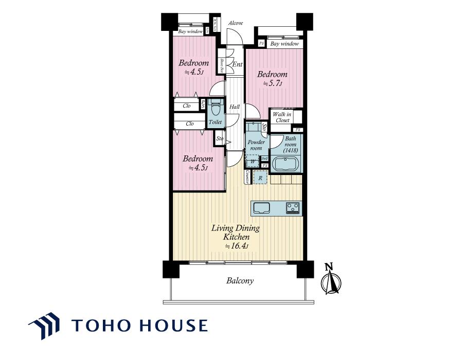 | 間取り | 3LDK | 専有面積 | 68.26m²(壁芯) |