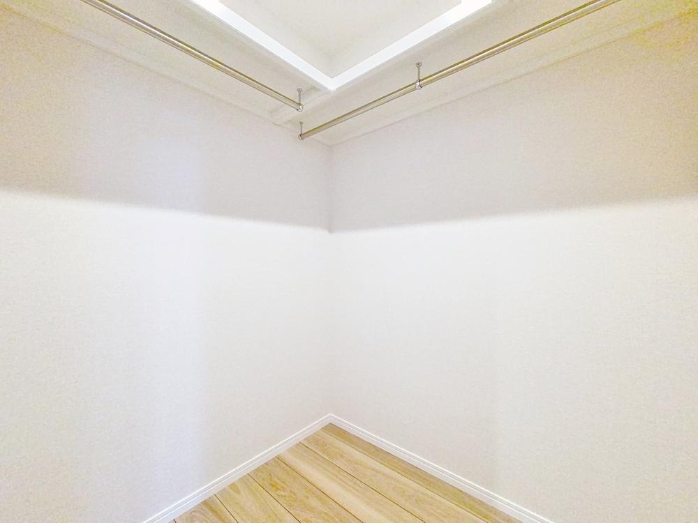「たっぷり収納。ウォークインクローゼット」たっぷりと荷物が入るよう、ウォークインクローゼットを完備いたしました。画像と現地では大きさ、広さの感覚が違います。是非ご自分の目で確かめてください。