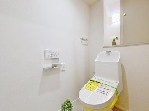 「リフォーム済・イレ」トイレは快適な温水洗浄便座付です。清潔感のあるホワイトで統一しました。いつも清潔な空間であって頂けるよう配慮された造りです。