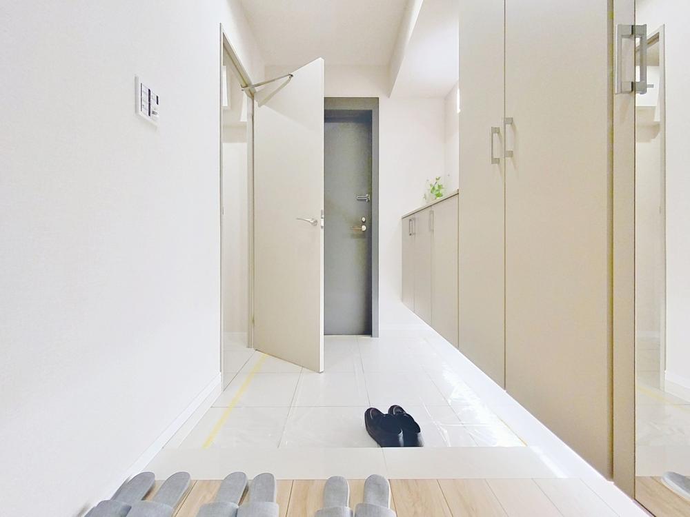 「玄関」人を迎え入れる最初の場所だからこそ、清潔感があり纏まった空間にして頂ける様にゆとりあるシューズボックスを設置しました。おでかけの時も帰宅の時も、すっきりとした玄関は気持ちが良いものです。