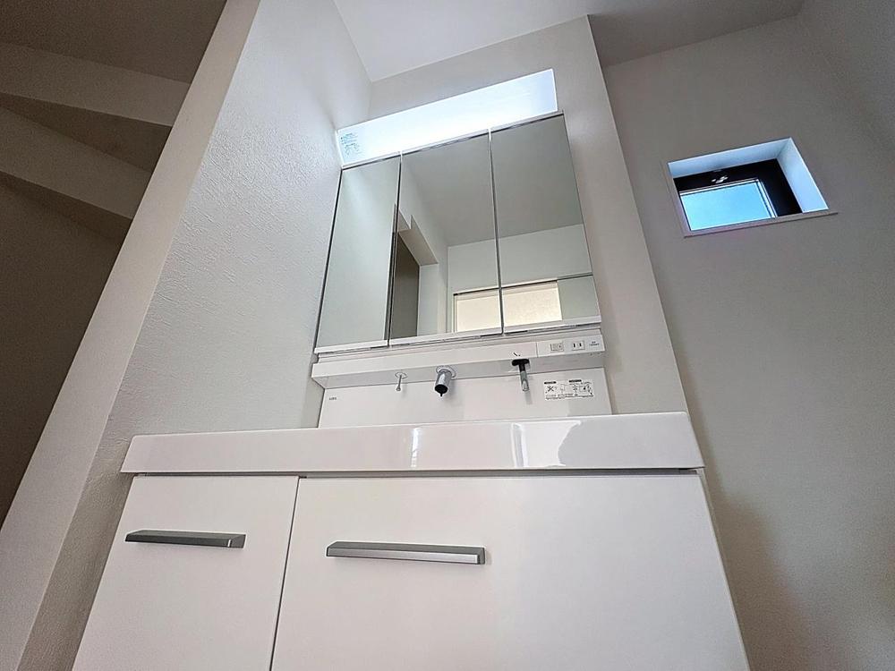 「洗面室」毎日の身だしなみチェックに欠かせない洗面室は、清潔感ある空間です。