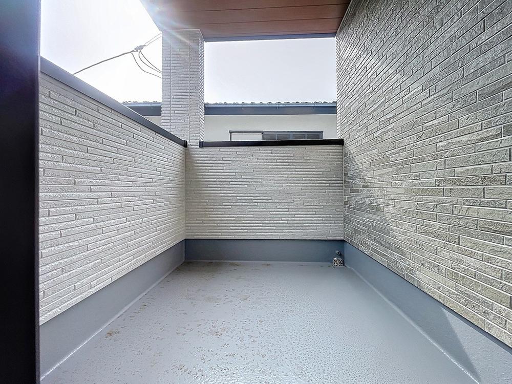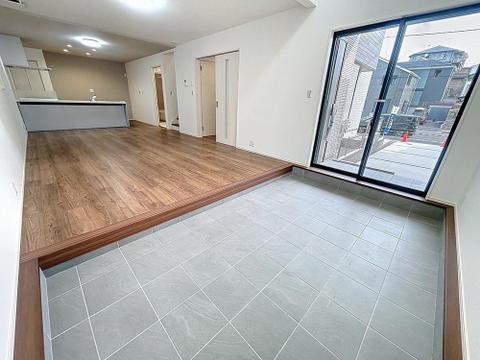 「4.9帖。土間」ベビーカー、自転車、アウトドア用品の収納など多目的に活用できる。汚れに強く掃除がしやすい点や、おしゃれな空間演出の場として、嬉しい空間です。。