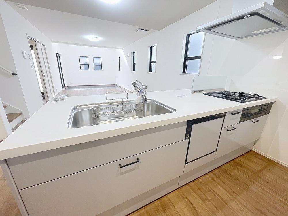 「家事時短の叶うキッチン◎」効率よくお料理ができる3口コンロ・食洗機・出し入れしやすいスライド収納を完備したシステムキッチン。確かな機能性を実感頂けます。