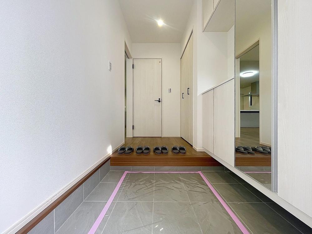 「玄関」人を迎え入れる最初の場所だからこそ、清潔感があり纏まった空間にして頂ける様にゆとりあるシューズボックスを設置しました。おでかけの時も帰宅の時も、すっきりとした玄関は気持ちが良いものです。